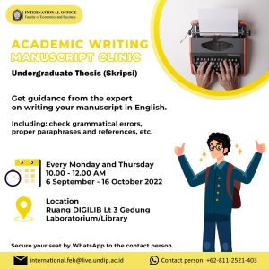 [et_pb_section admin_label=”section”] [et_pb_row admin_label=”row”] [et_pb_column type=”4_4″][et_pb_text admin_label=”Text”]Fakultas Ekonomika dan Bisnis Universitas Diponegoro menyelenggarakan Academic Writing Manuscript Clinic. Sasaran dari acara ini adalah mahasiswa yang sedang