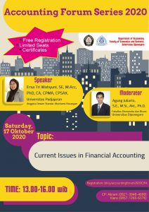 Departemen Akuntansi Universitas Diponegoro mengadakan Accounting Forum (AF) series pada 17 Oktober 2020. Seperti sebelumnya acara ini diadakan secara virtual mengingat masa pandemi. Isu terkini