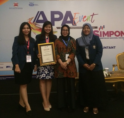 SIMPONAS finalists are selected based on the submitted paper. There were 4 themes available, and the teams of Top 3 Papers from each theme were invited by IAI to present their paper in SIMPONAS 2018. Finalists had golden opportunity to meet President of Republic Indonesia (Ir. Joko Widodo), Finance Minister of Republic Indonesia (Dr. Sri Mulyani Indrawati), President of International Federation of Accountants (In-Ki Joo), and other inspiring people in that event.